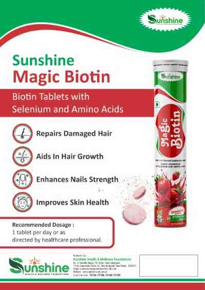 At Sunshine Naturals, we believe beauty starts from within. Magic Biotin Tablets are your daily beauty essentialโ€”backed by science, powered by nature, and trusted by those who want to feel confident and radiant from root to tip.