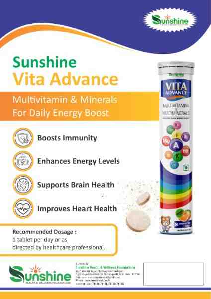 At Sunshine Naturals, we believe that true wellness starts with smart, science-backed nutrition. Vita Advance Tablets are your all-in-one solution for staying energized, protected, and thrivingโ€”every single day.